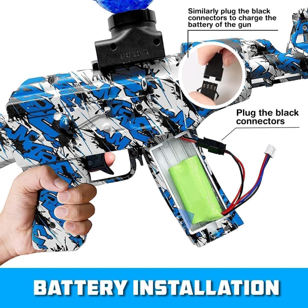 This Toy gun can use soft bullets& Splatter balls either, you can load the soft bullet one at a time or install a hopper to use gel balls. Safe & Fun. A gel water ball blaster is a safe way for outdoor shooting games. This is a continuous electric gel blaster that can be installed with batteries, which can be used for a long time. The materials of the Fitist Gel Balls are non-toxic, eco-friendly, and biodegradable. It is very easy to assemble. This blaster is powered by a 1200mAh battery. The battery is rechargeable. You can charge the battery with Included USB cable. (Please read the instruction carefully, and install the battery according to the installation method in the instruction. The gel water ball blaster is spring driven. You can shoot 20-25 pellets per second and range up to 15 meters. It is equipped with a magazine that can load 600-700 gel balls, without the need to constantly reload water balls, you can enjoy it in the team game. Practice and compete with the blaster auto-resetting target individually. Enjoy hours of safe and fun play by forming teams with different color-gell bullets. It is great entertainment, especially for group games.